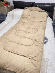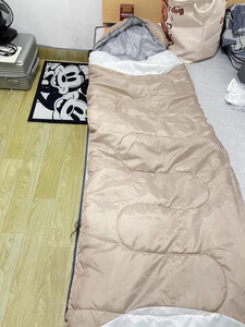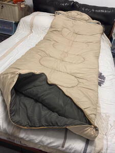 几十块钱买了一个单人的睡袋,是黑色的,然后拆开之后稍微有一点点的味道,晾一晾太阳底下晒一晒就还好,质量还是可以的,不30块钱一个睡袋的价格还是可以接受的。