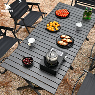 Guide Series户外铝合金折叠桌露营桌便携升降沙滩烧烤桌加宽桌自驾游车载桌 新 加宽金属 木纹黑色