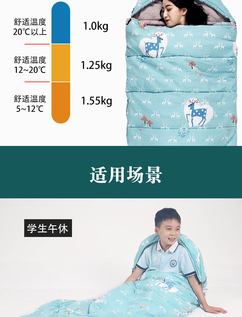 北山狼儿童睡袋夏季室内小学生午休防寒保暖中大童便携防踢被秋冬加厚 小兔子-1kg轻薄款【夏季15-28℃】