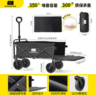 原始人露营车推车户外营地拖车大折叠手推野餐野营手拉车小拉车 180L 双刹车后开万向轮聚拢款-典雅黑
