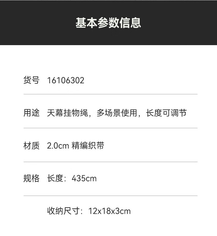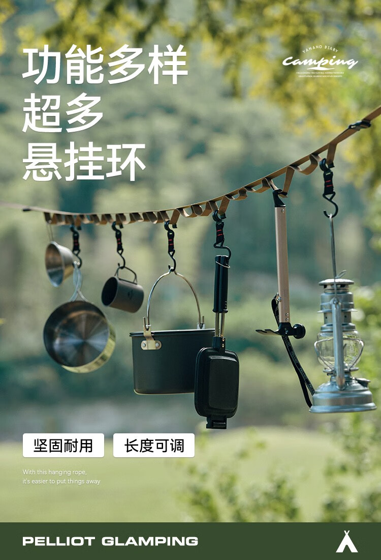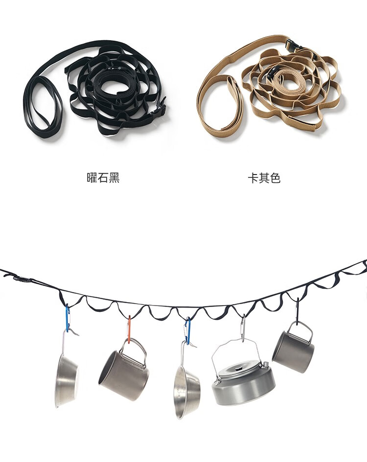 伯希和(Pelliot)多功能晾衣绳户外露营帐篷挂物绳旅行挂衣服车载收纳置物绳 曜石黑