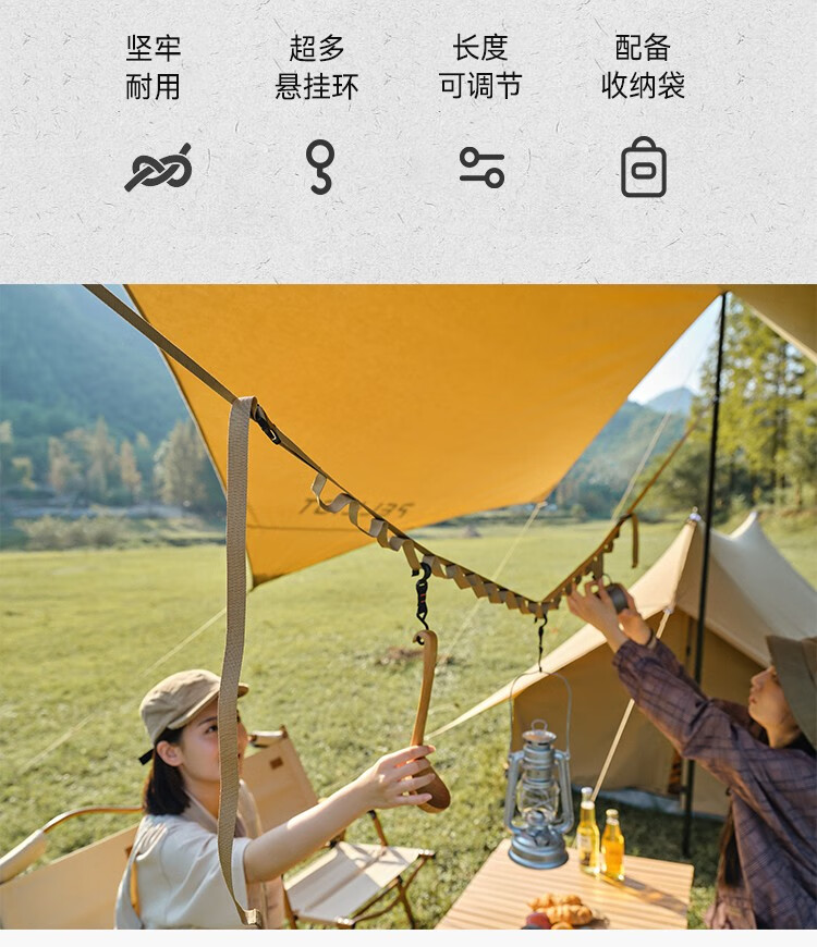 Naturehike 挪客牛皮挂物绳 精致露营帐篷挂绳户外野营多功能置物绳 象牙白
