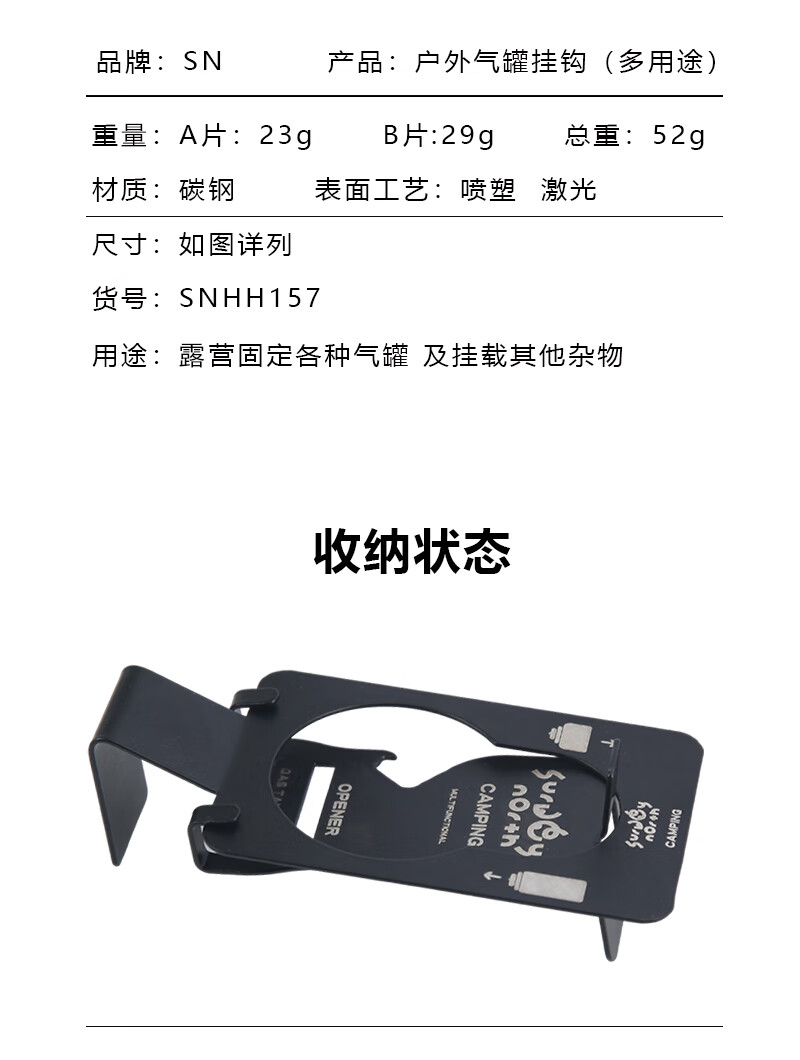 SURVEY NORTH 北部勘察户外露营气罐挂钩通用各种户外桌多用途多功能隔离气罐远离火源 挂钩B片