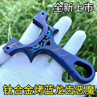 新款钛合金龙齿弹弓快压暗扣高精度精准户外扁皮弓小恶魔鬼脸弓 烤蓝恶魔-8020 弹弓+5副皮+防滑圈+弓盒+瞄具