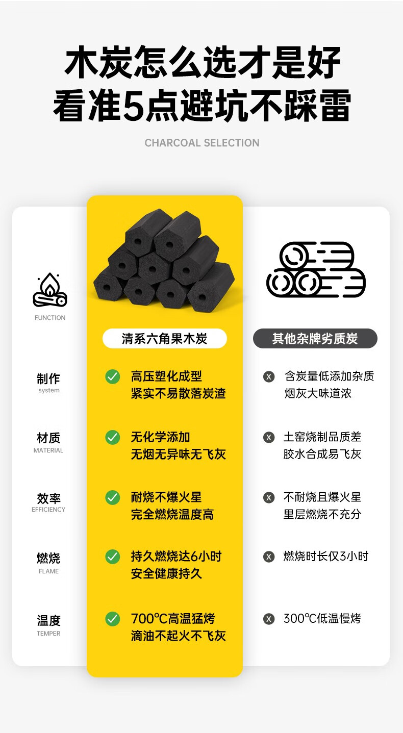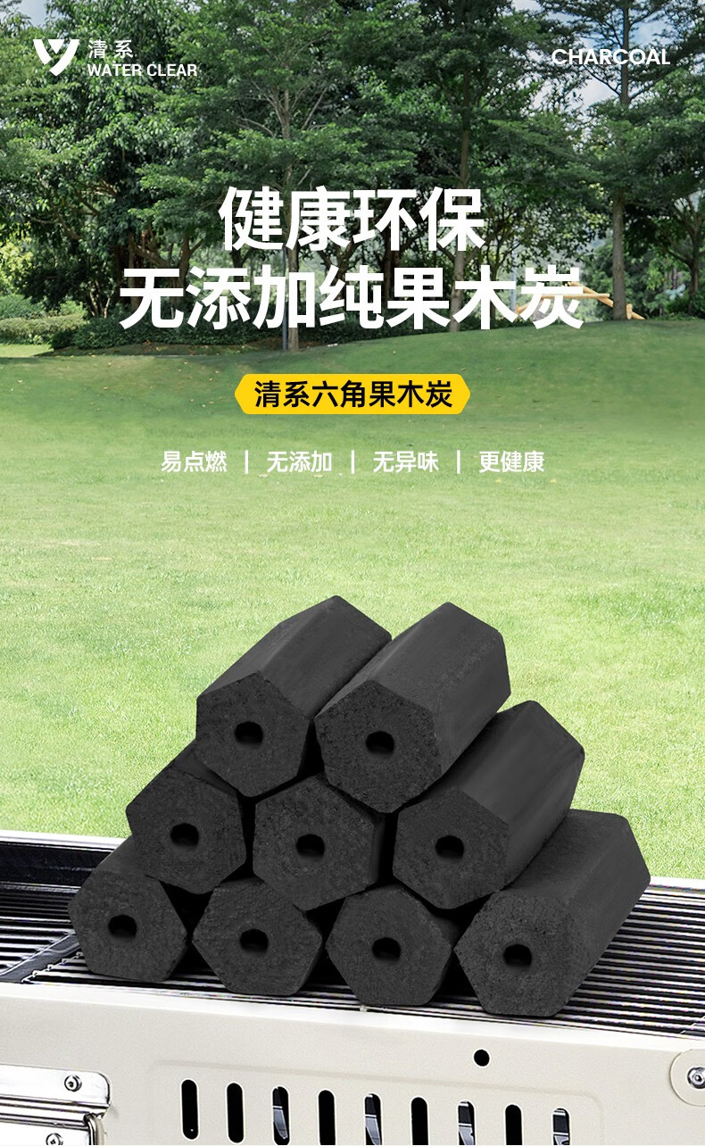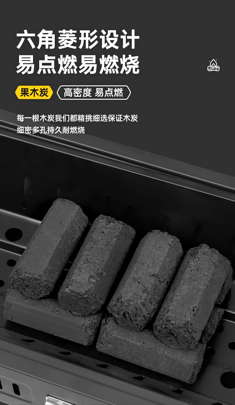 清系烧烤碳 原木炭 取暖炭 条形空心机制木炭 无烟烧烤炭含引火块 果木炭5斤-引燃块