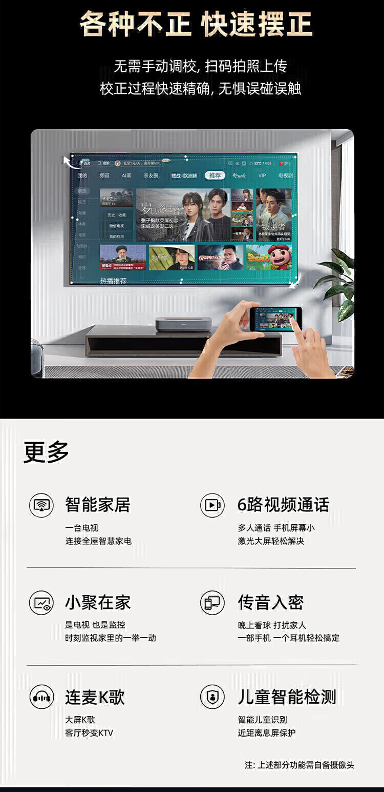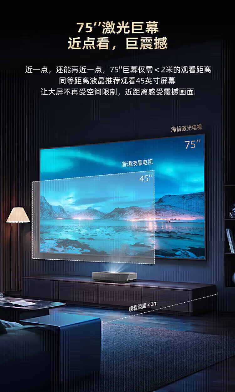 外形外观:金属边框很漂亮,看着屏幕很有质感,放在客厅里很搭配 运行速度:快的飞起,4+64没话说,主流配置了,5年内够用了 屏幕音效:屏幕很好,背光分区现在是趋势,亮度很亮了最高1200呢,色彩调试的也很平衡,绚丽多彩,还原度高! 尺寸大小:75寸刚刚好,这个距离3.2米沉浸感很强! 即送即装:安装挺快,就是电源线稍微有点短,能有2.5米或者3米的电源线就更好了