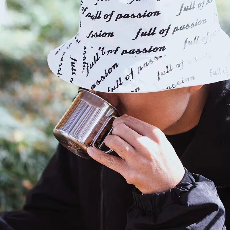 鹿险家户外水杯便携式露营杯304不锈钢折叠杯套杯耐高温茶杯野营杯套装 4杯+网袋(杯杯相套)