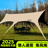 早行客天幕黑胶帐篷无风绳蝶形燕尾露营天幕懒人速搭遮阳防雨野营天幕 黑胶【3.3*4.5米】适合5-8人