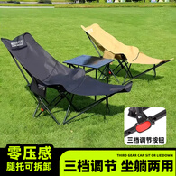 早行客户外露营月亮椅便携折叠露营椅三挡调节带脚托午休躺椅户外钓鱼椅 黑色 三档调节带脚托