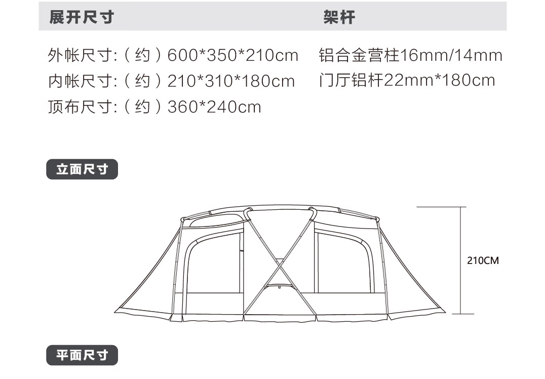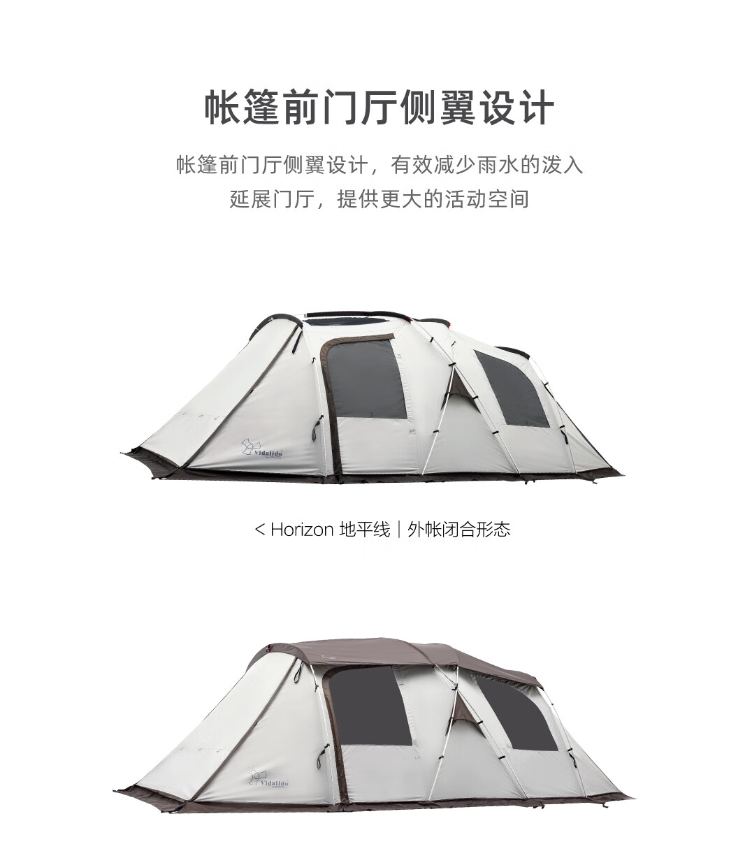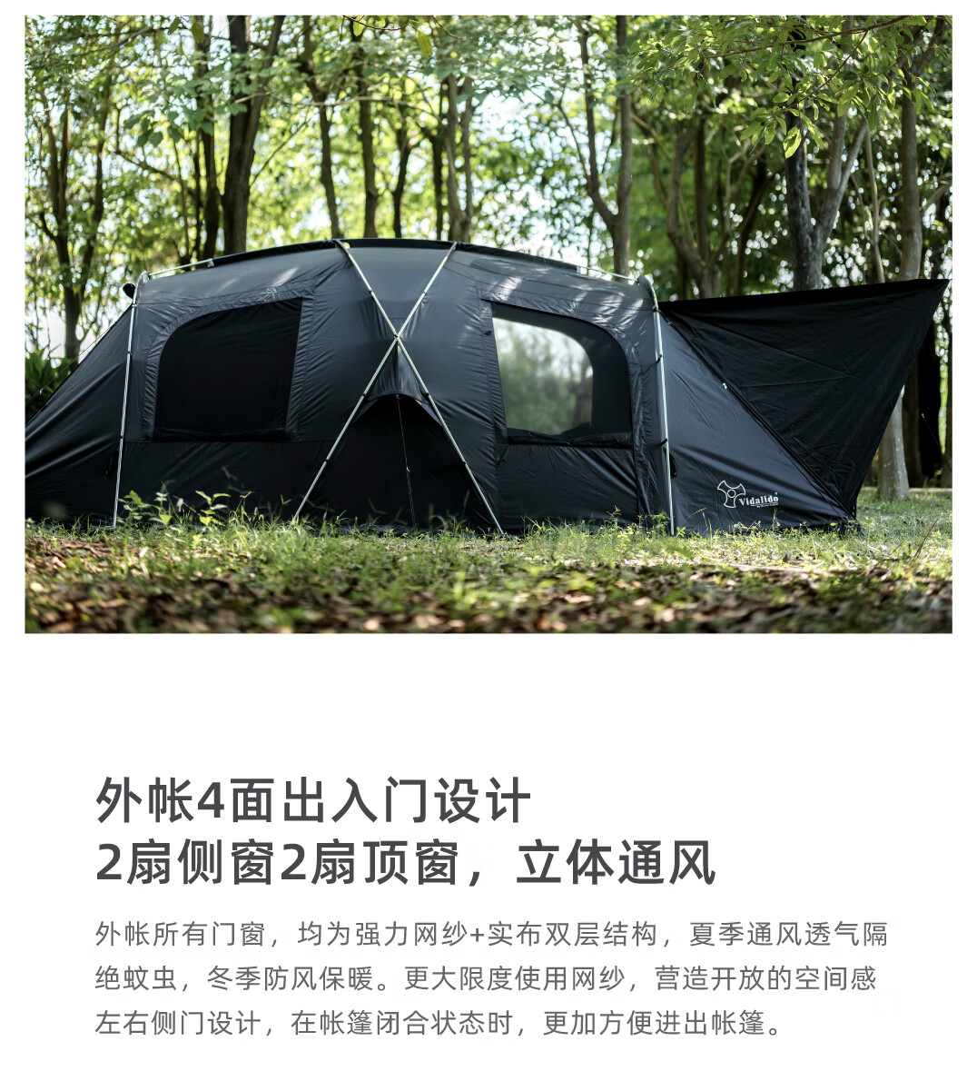 vidalido维达利多户外露营地平线隧道帐一室一厅防雨防晒大型帐篷 地平线 黑色