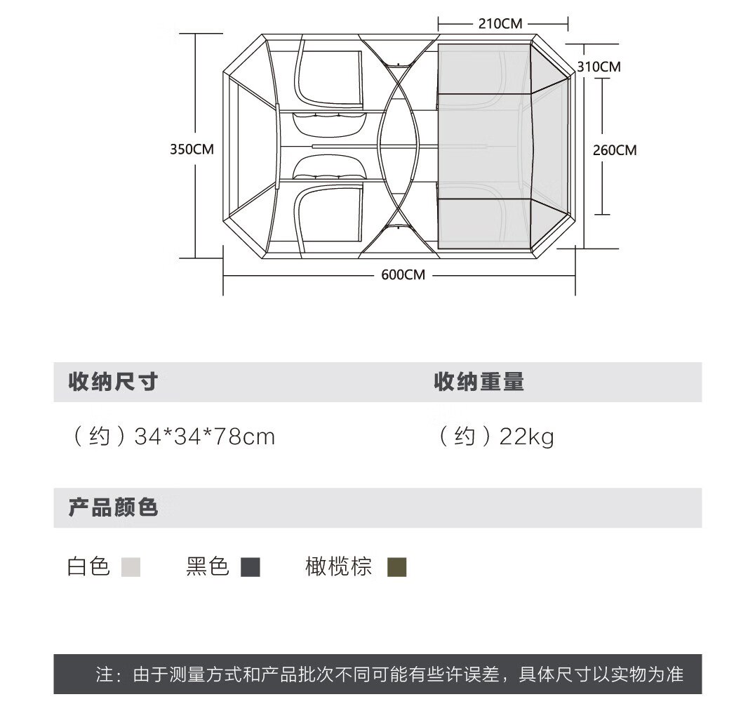 山脊户外露营装备DIY六角穹顶客厅帐篷模块便携野营过 六合穹浴盆地垫 370*320cm 均码