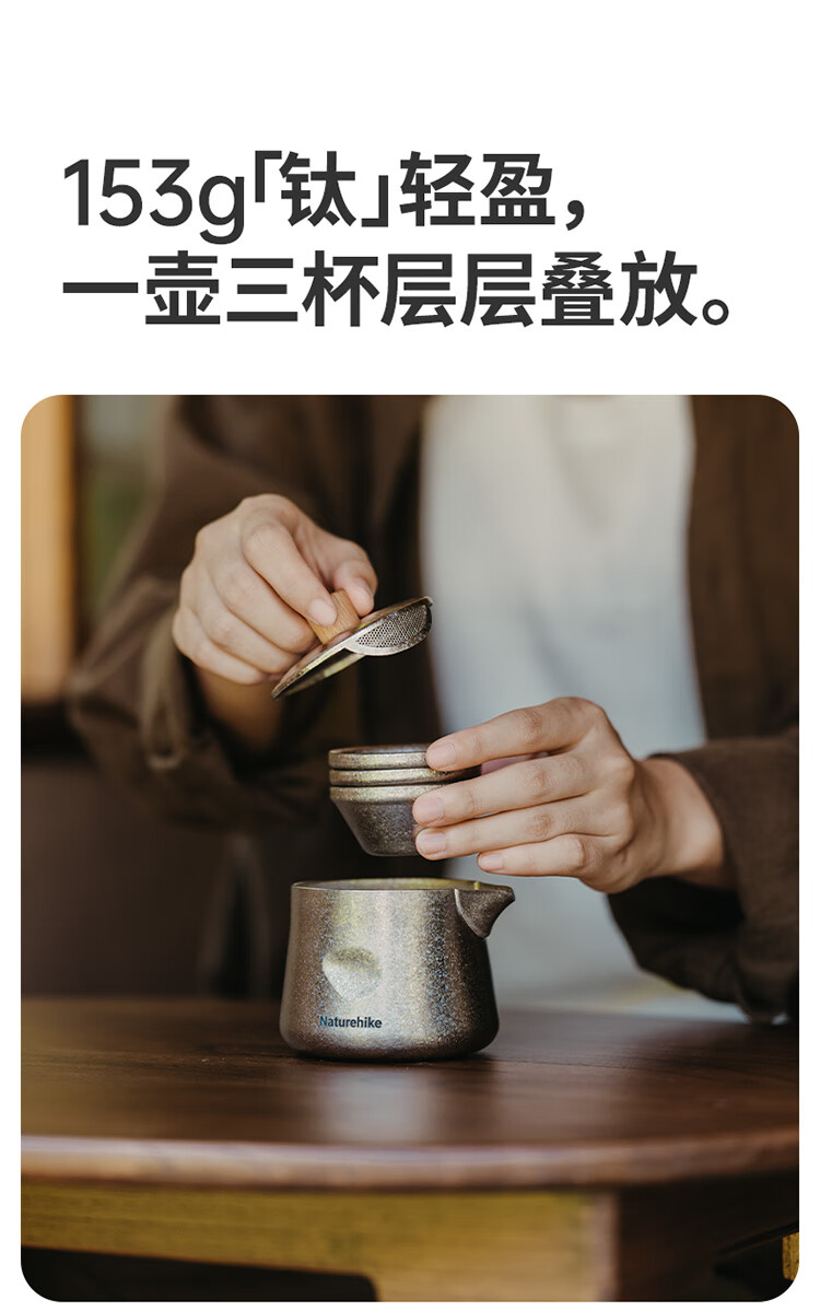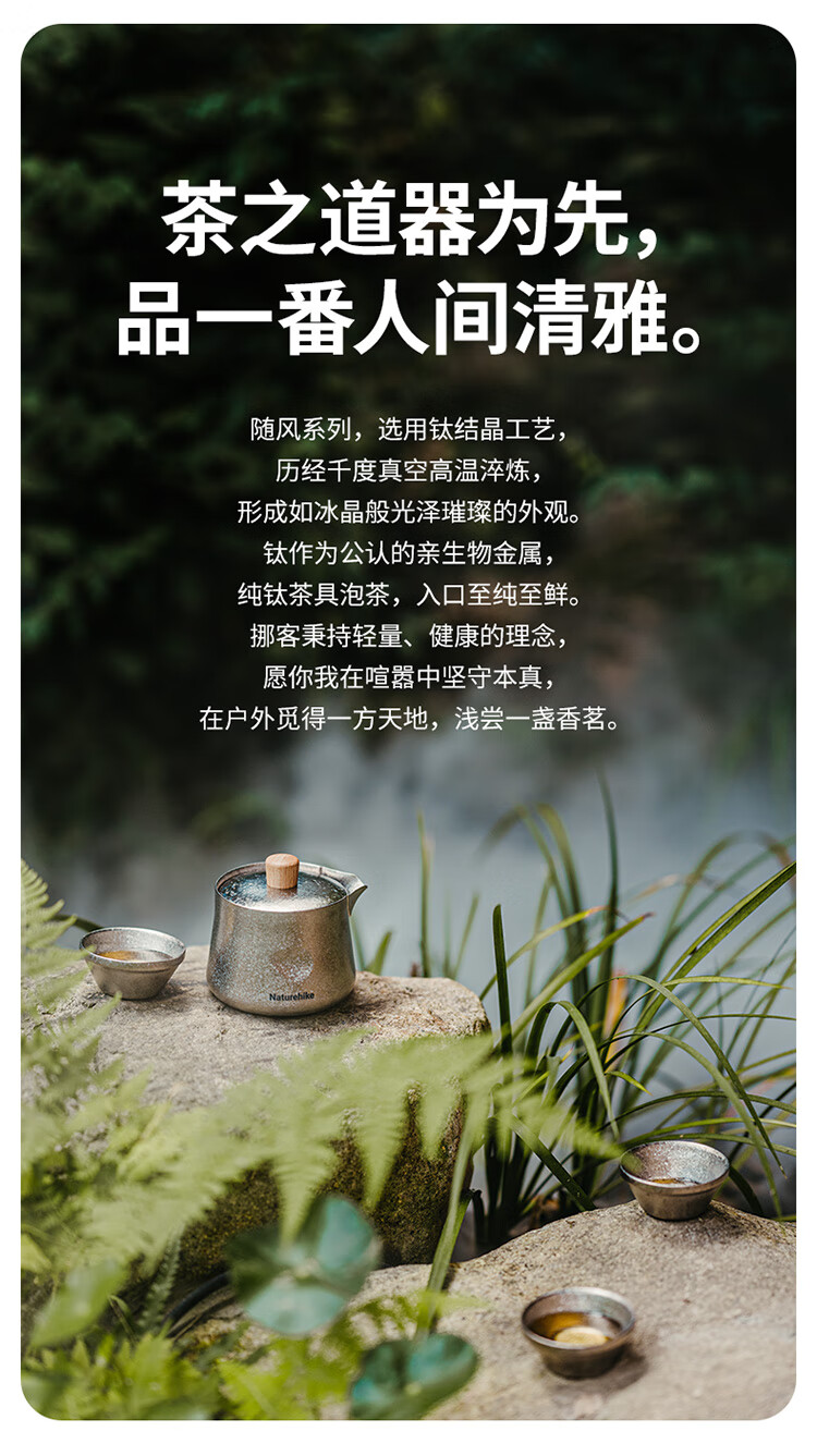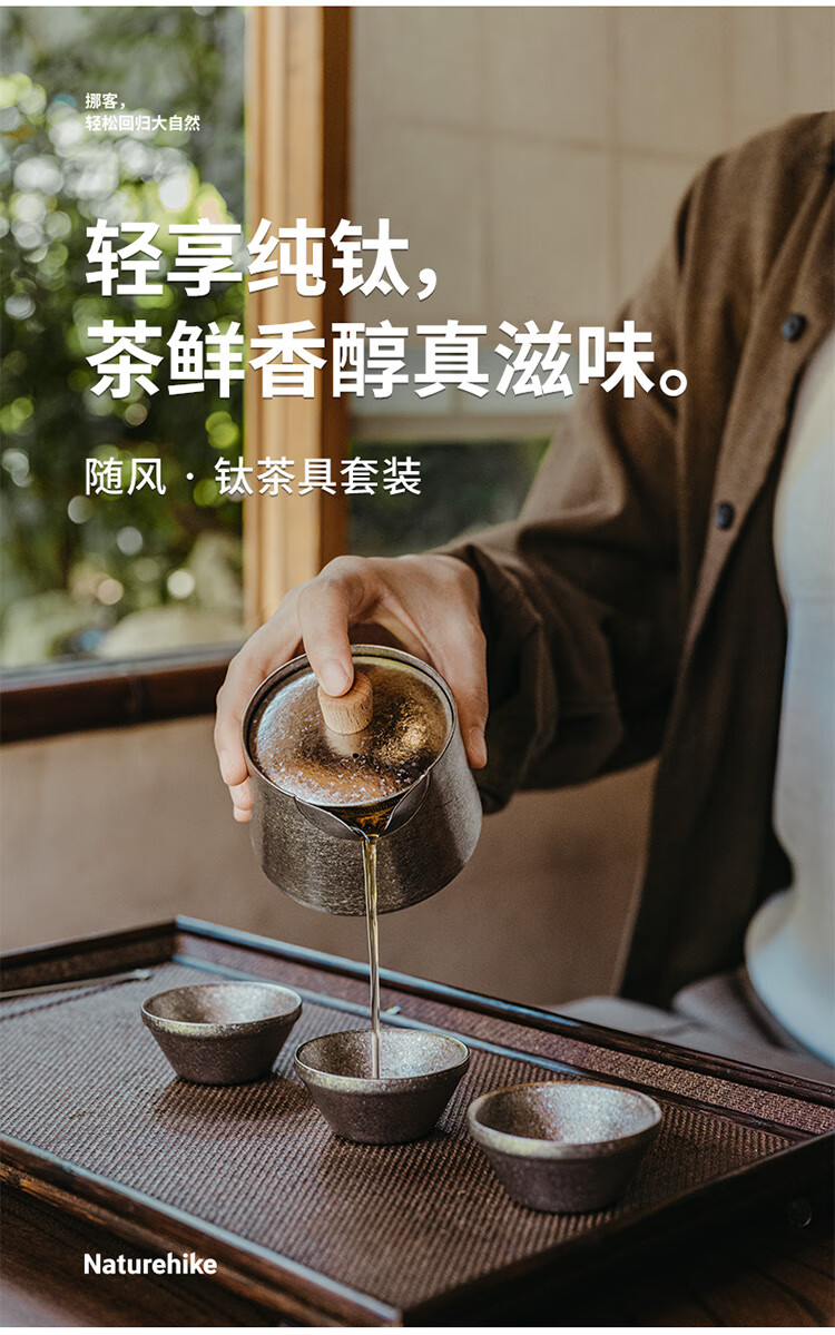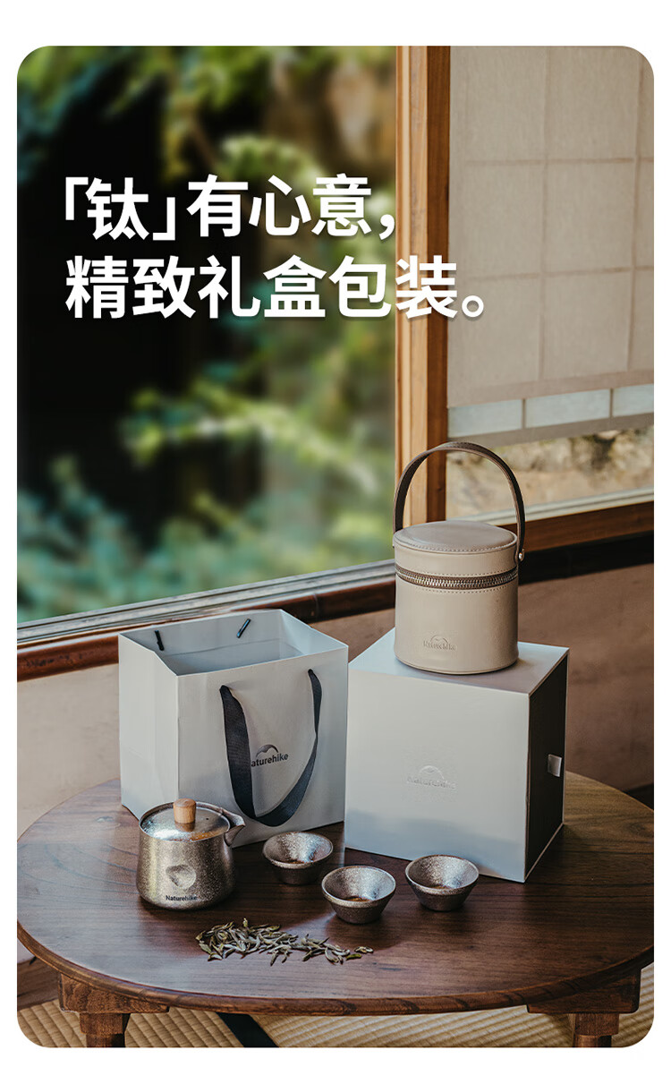 NatureHike挪客纯钛茶具套装户外茶具便携式泡茶器钛茶壶钛水杯双层隔热 冰晶银/礼盒装