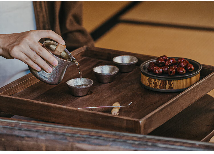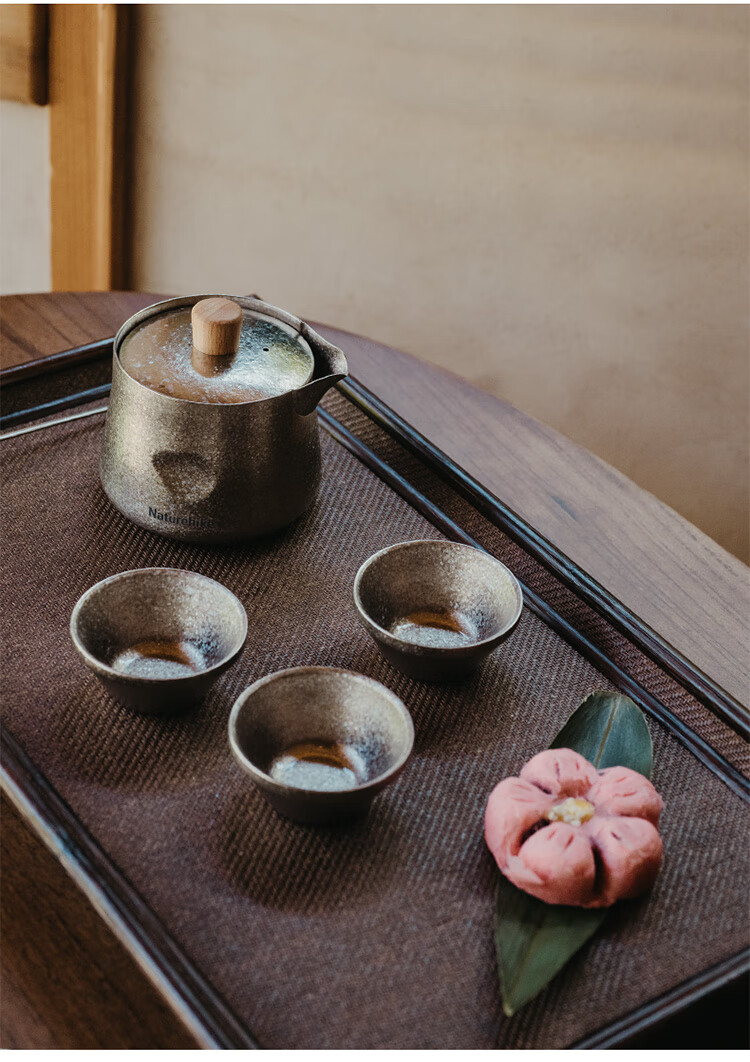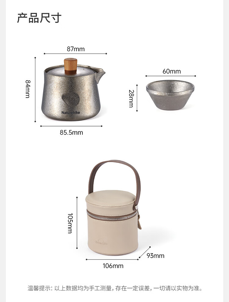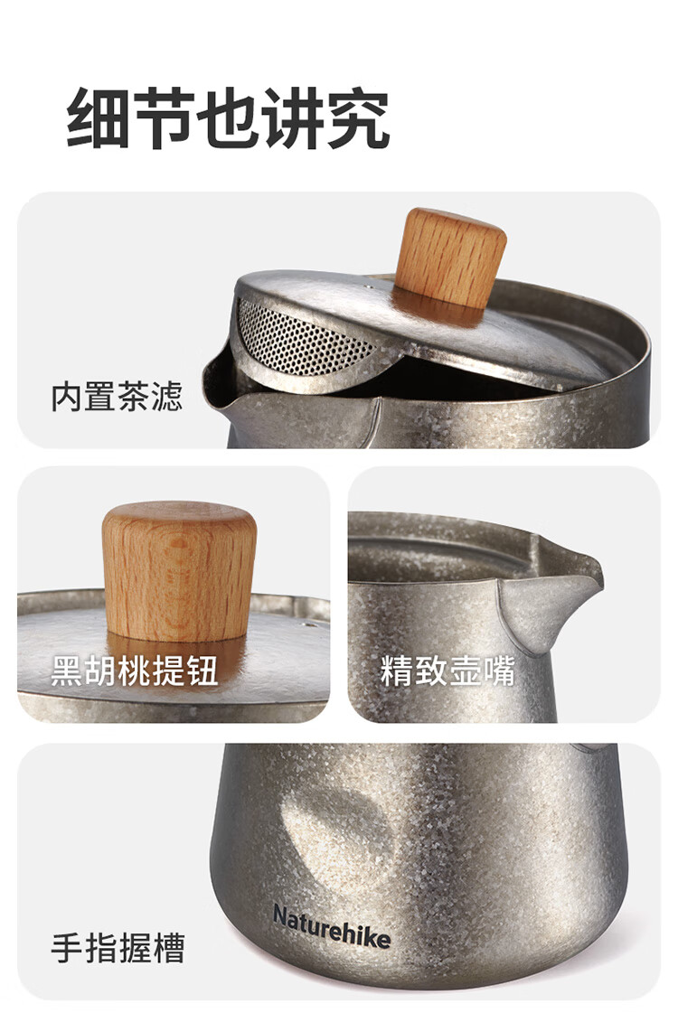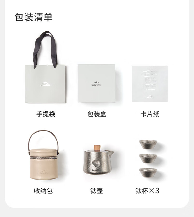 NatureHike挪客纯钛茶具套装户外茶具便携式泡茶器钛茶壶钛水杯双层隔热 冰晶银/礼盒装