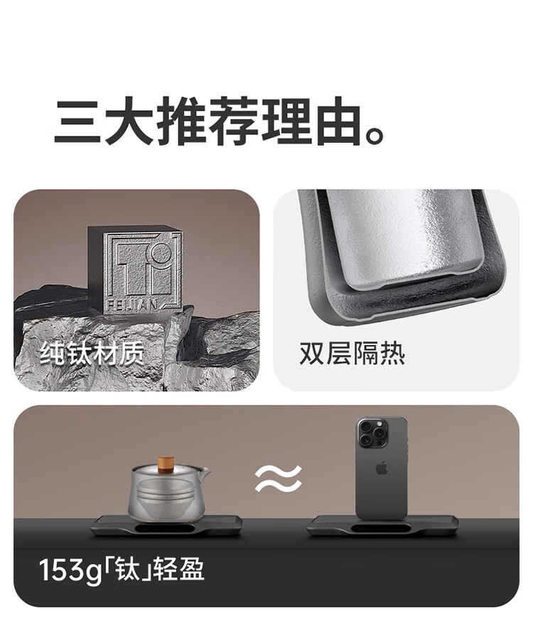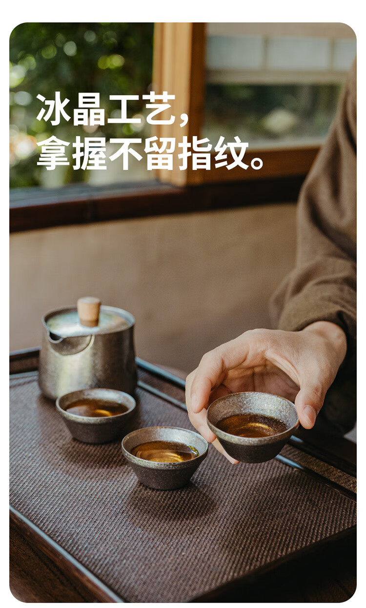 Ti artisan钛工匠户外纯钛公道杯家用隔热分茶器功夫茶具配件纯钛茶海钛茶具 公道杯+2杯【冰花款】送防烫圈