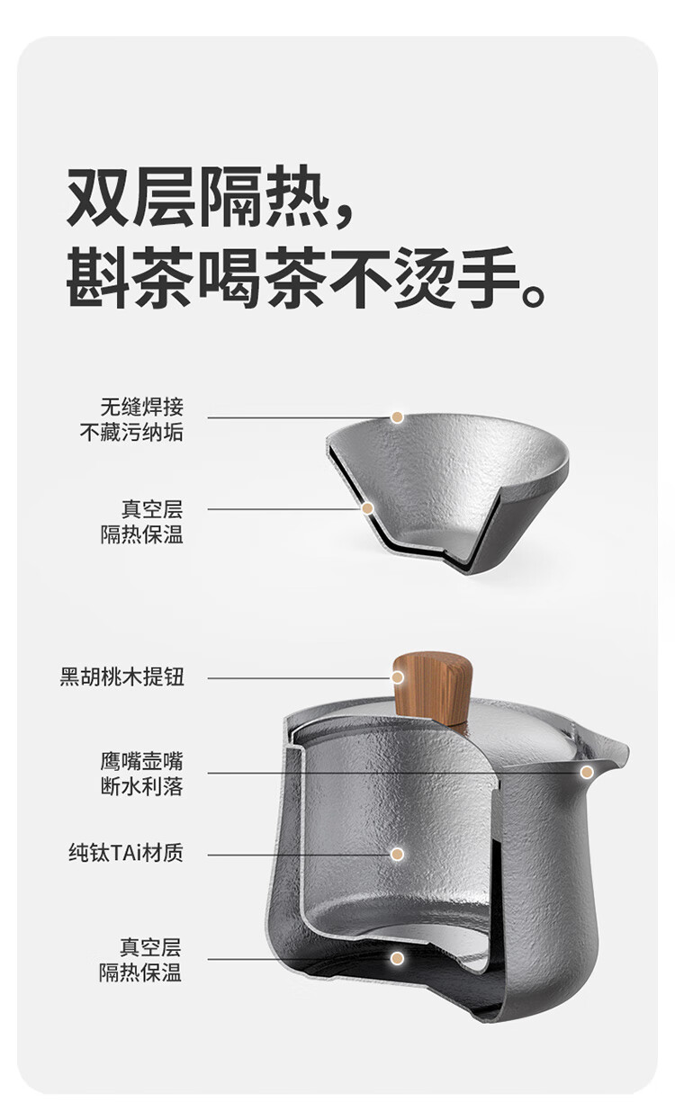 Ti artisan钛工匠纯钛旅行功夫茶具套装户外露营便携式双层防烫鹰嘴泡茶器 钛泡茶器+收纳盒【冰花款】