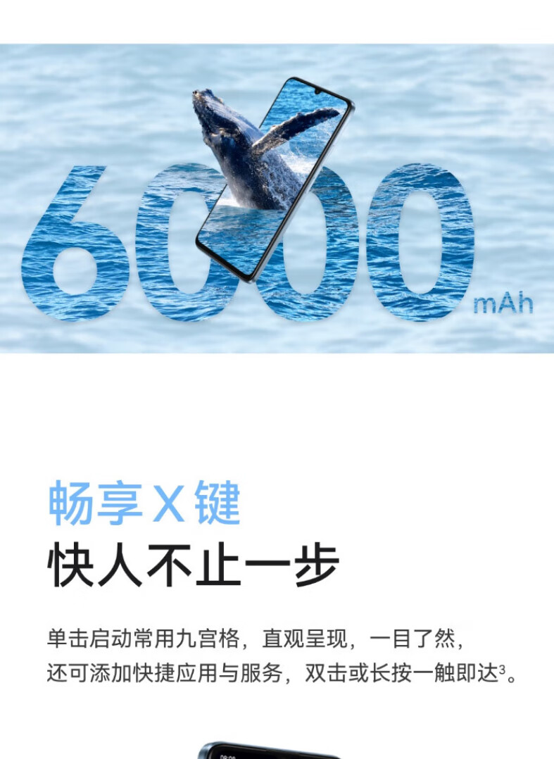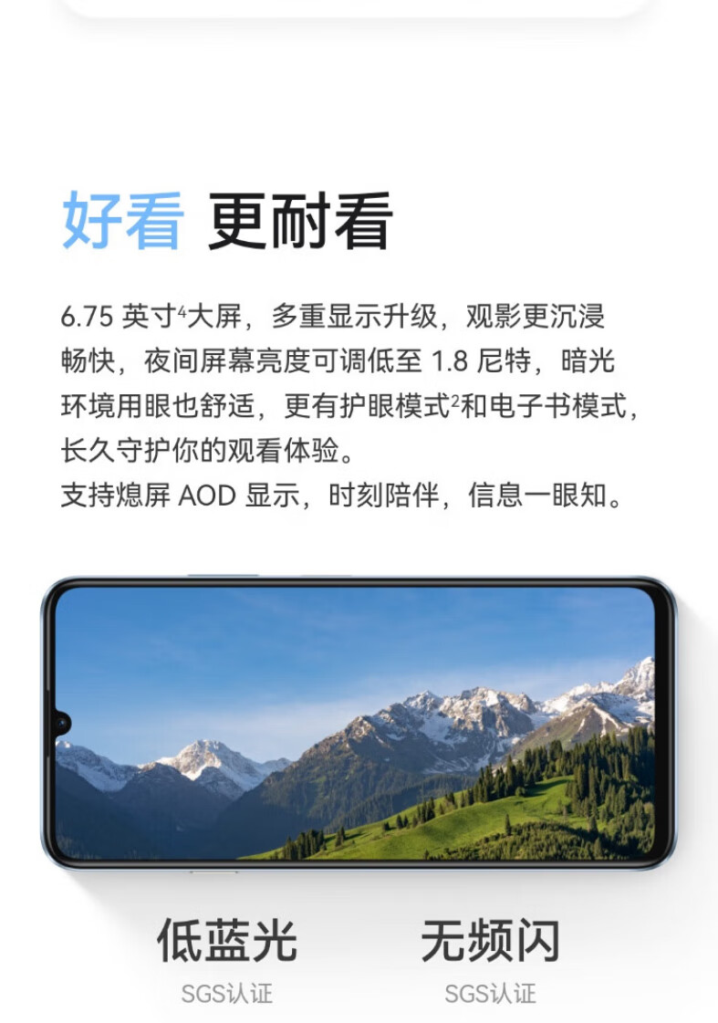 HUAWEI/华为 畅享70S 6.75英寸AOD护眼大屏 6000mAh巨鲸超能续航 鸿蒙智能手机 雪域白 8+256GB