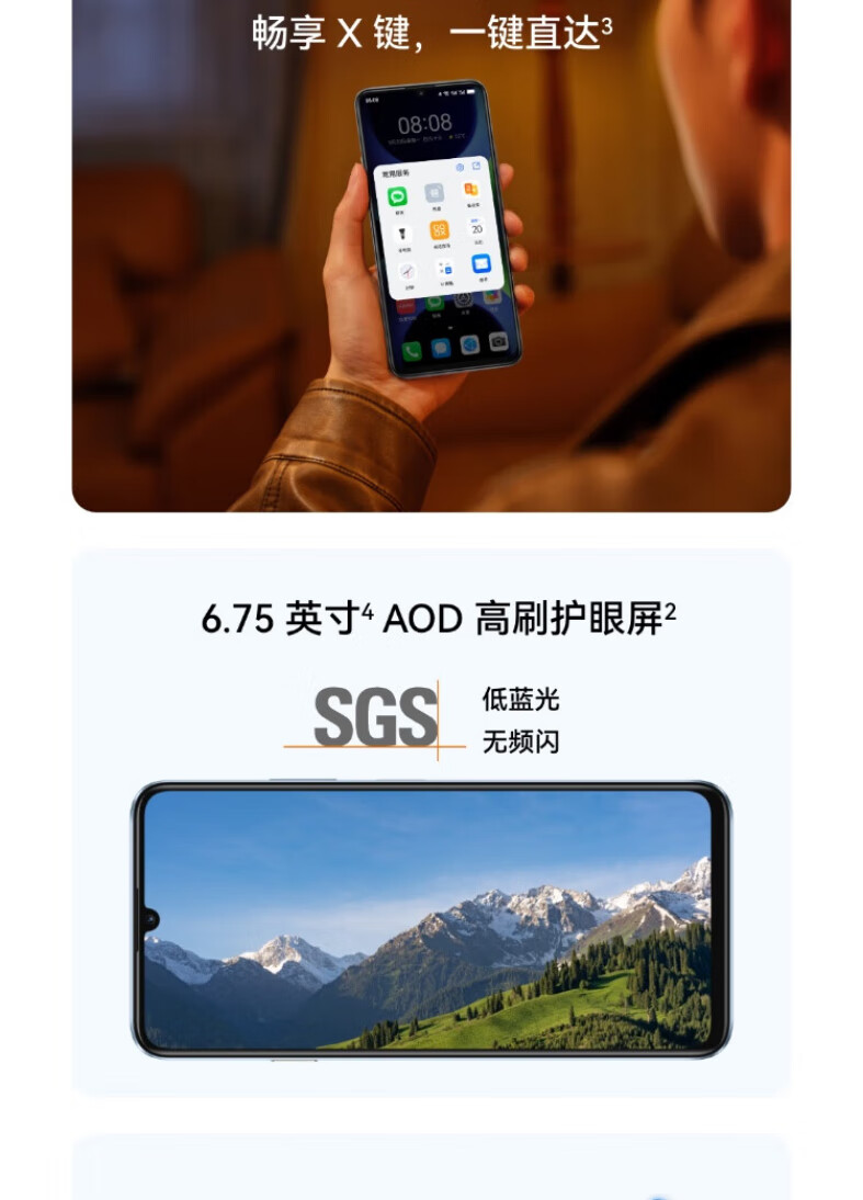 华为(HUAWEI)畅享 70S 新品手机华为鸿蒙智能手机 6.75英寸AOD护眼大屏 畅享X键常用功能一步直达 雪域白 8GB+128GB【1年碎屏险+3年质保】