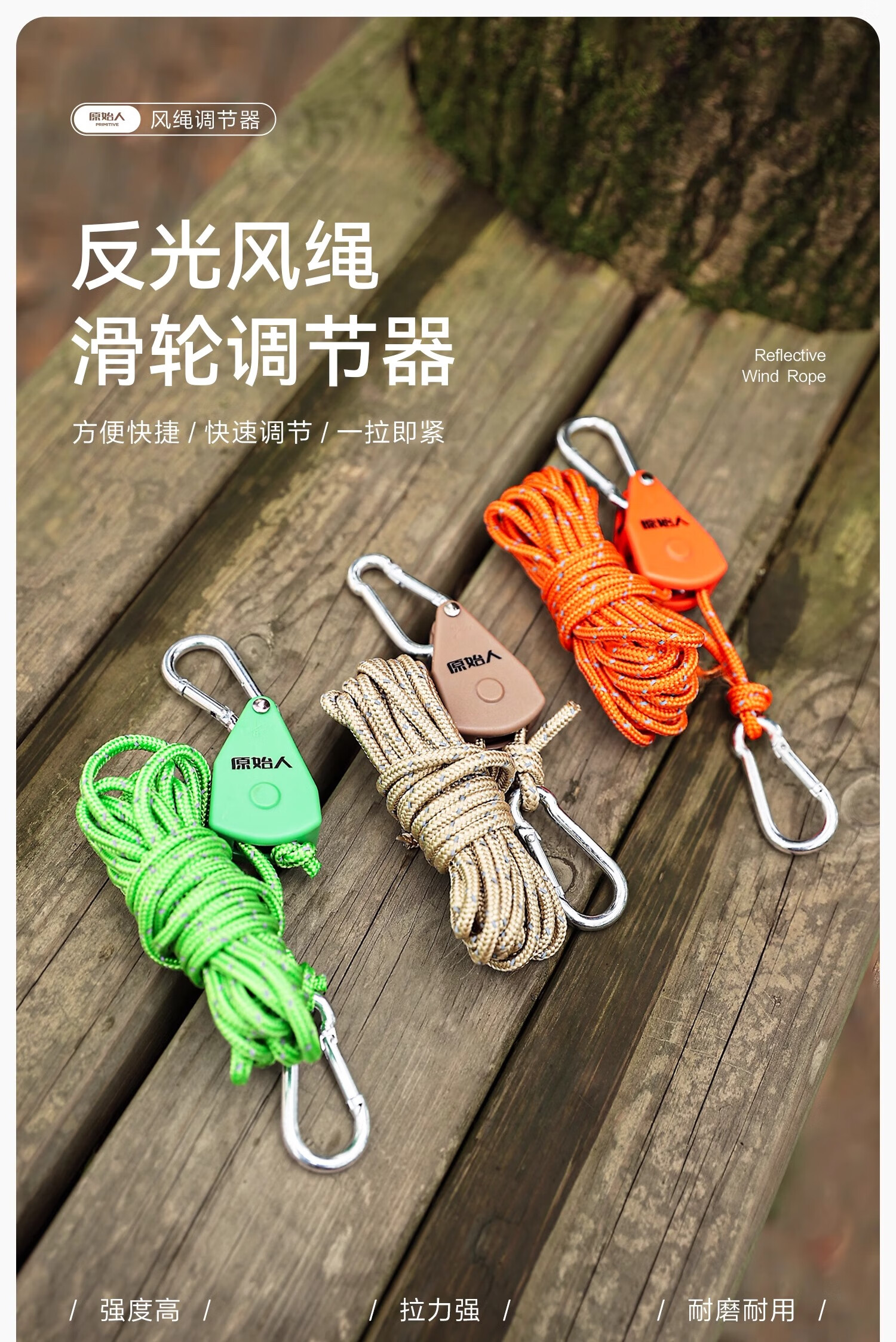 原始人户外帐篷配件反光风绳滑轮拉紧器防风绳调节器 【滑轮款】橘色4MM-4M