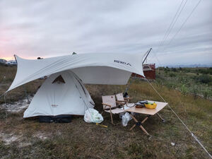 天幕不错,质量好,颜色也很高级。下次可以带娃出去玩,再摆个地毯。安装还算比较简单,原始人大品牌值得信赖