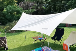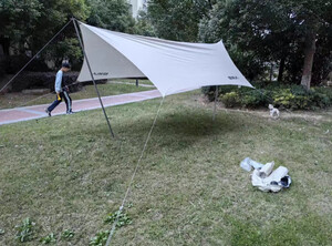 天慕不错,防晒效果很好,头一次买露营装备,在网上对比了好多品牌,最终选着了原始人,没有让我失望,6个小朋友在天慕下面玩,还有几个大人,空间也挺大的。