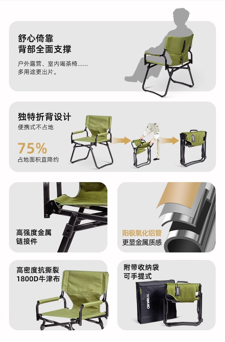 OnwaySports导演椅户外折叠露营野餐野营网红自驾旅行露台阳台钓鱼新型凳子 军绿色