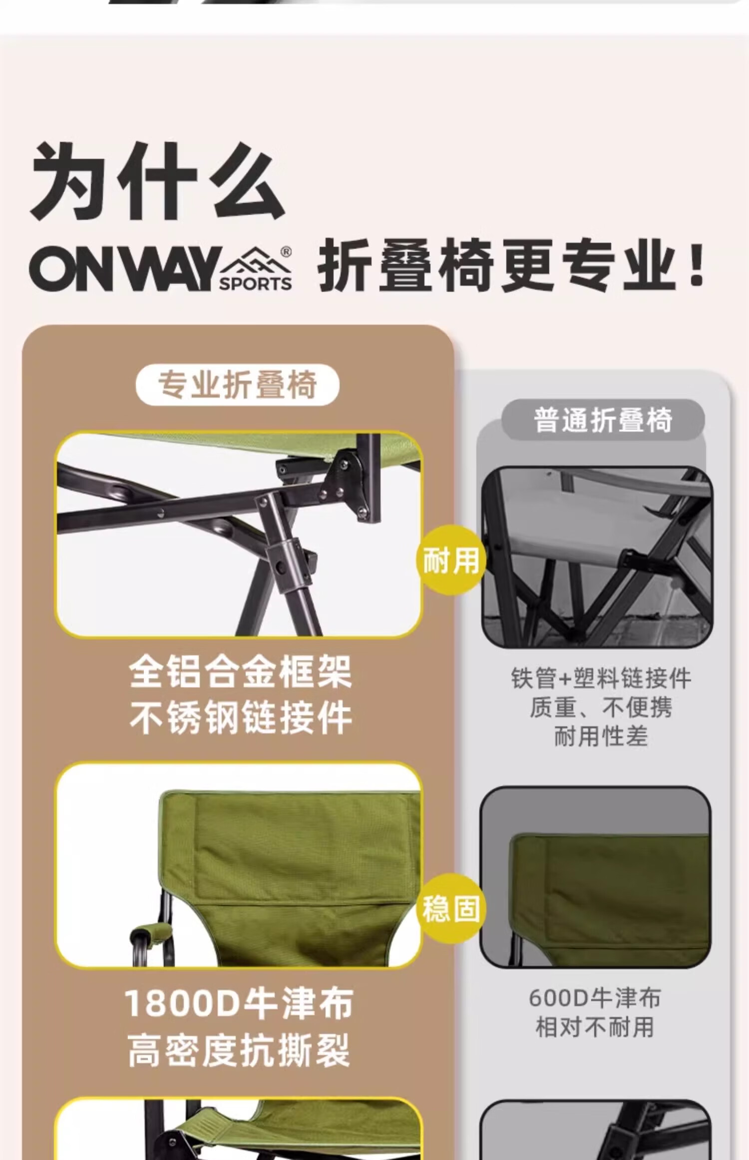 OnwaySports英军椅户外露营便携折叠靠背椅铝合金野餐野营家用克米特高背椅 英军椅_象牙白
