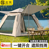 北乐帐篷户外露营防雨过夜3人-4人便携式折叠速开全自动加厚防晒帐篷 大号【两门两窗-银胶】+带天窗