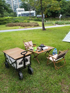 云伴(YUNBAN)营地车手推车户外露营车便携式可折叠大容量拉杆小拉车 8寸双拼色坦克轮+榉木色盖板