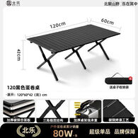 北乐户外露营折叠桌椅套装便携式蛋卷桌野营野炊野餐桌椅子一桌四椅 120CM蛋卷桌黑色