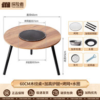 探险者(TAN XIAN ZHE)户外烧烤桌炉一体烧烤炉户外碳烤炉桌面烤肉炉烧烤炉子庭院烤炉 【60CM】木纹桌+烤网