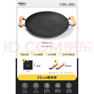 原始人露营烤盘便携户外电磁卡式炉铁板烧烤盘煎锅麦饭石韩式家用烤肉盘 【精铁明火款】33CM-配收纳袋