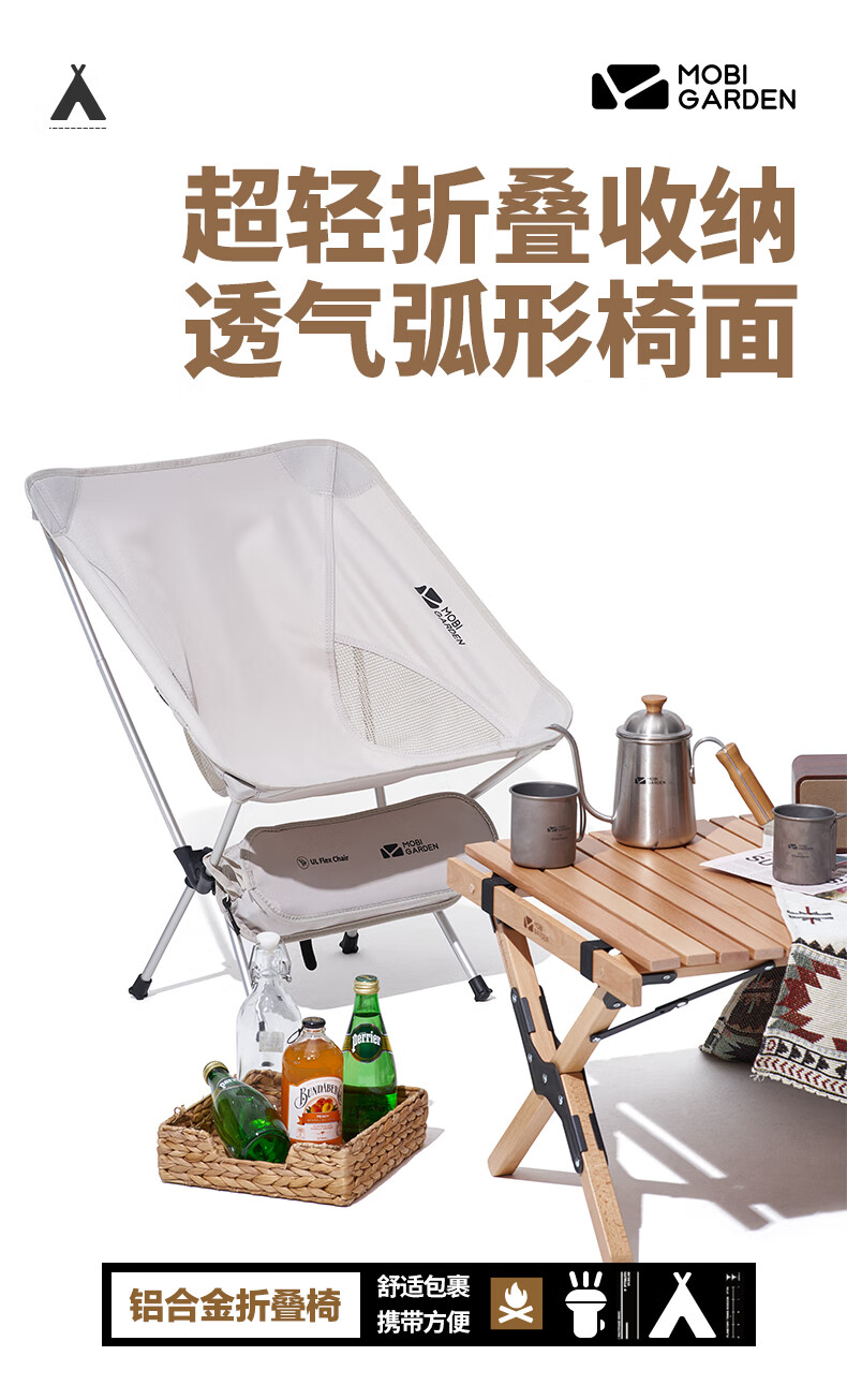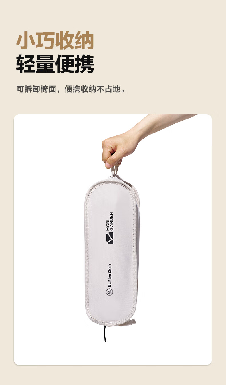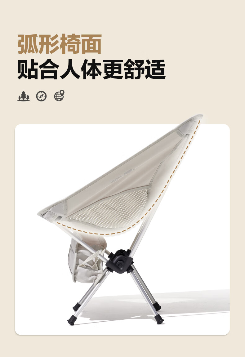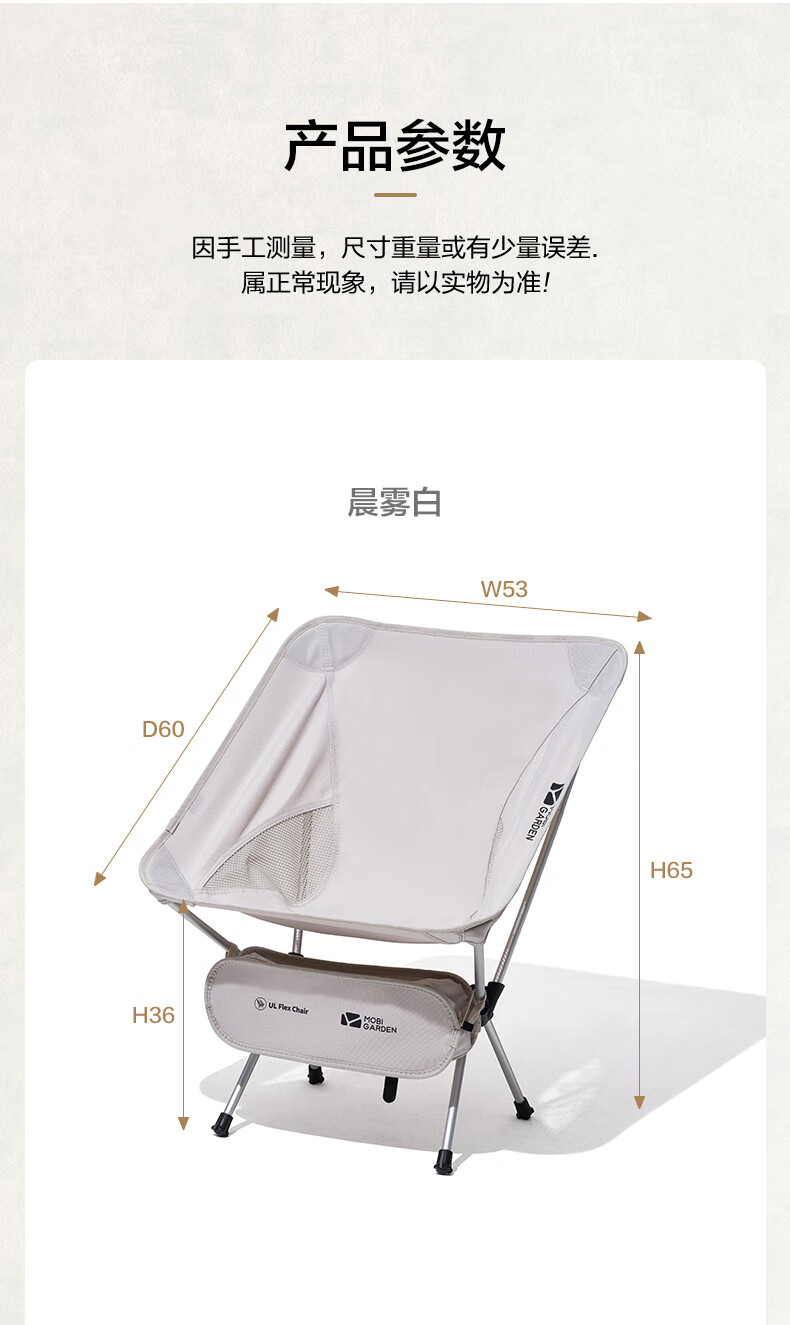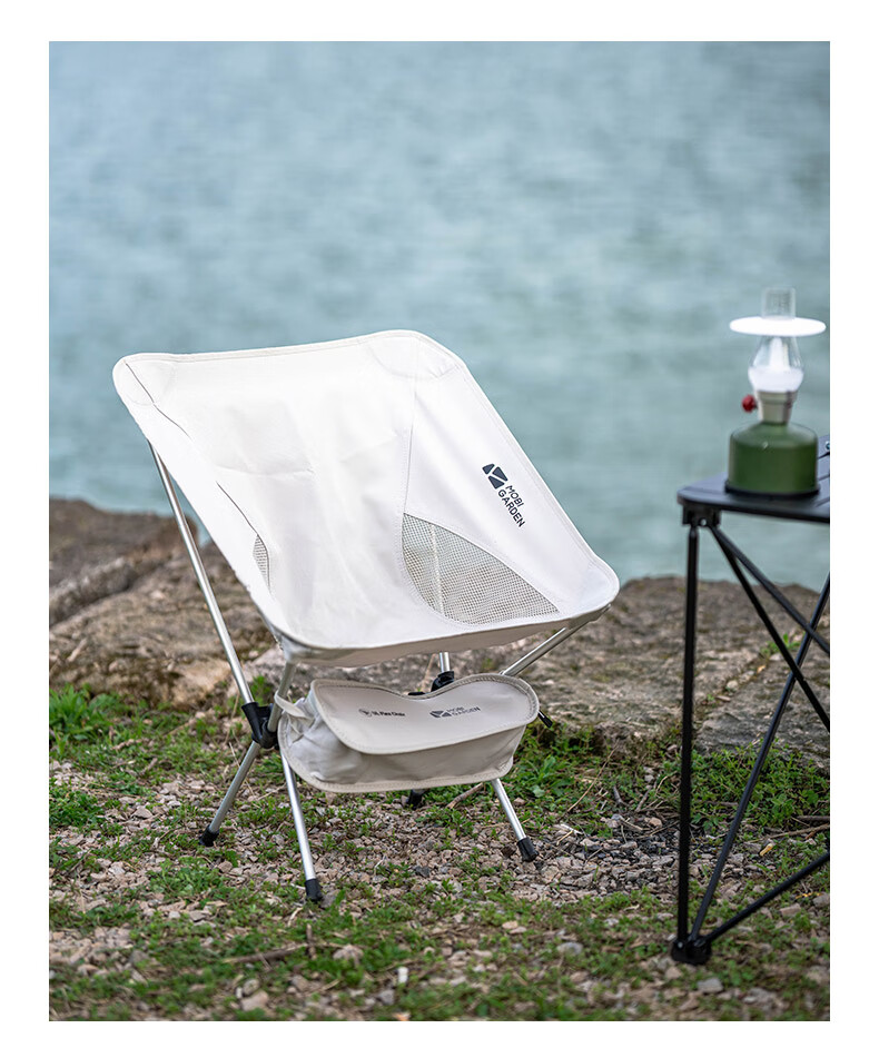 牧高笛(MOBIGARDEN)户外露营月亮椅野营折叠椅超轻便携带收纳包野餐折叠凳子 雾白