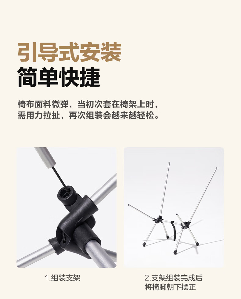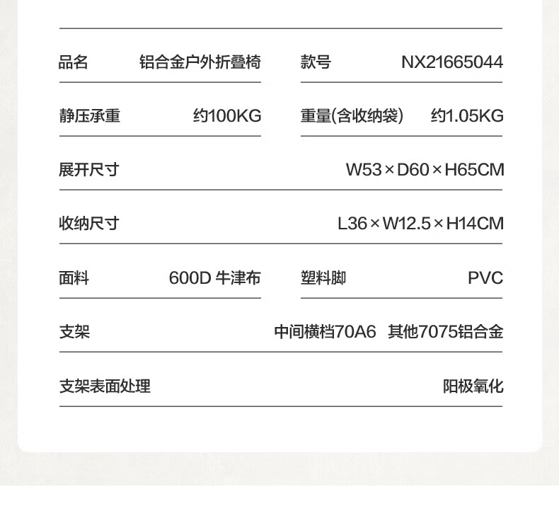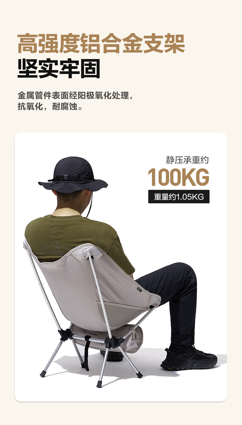 牧高笛(MOBIGARDEN) 折叠椅户外露营铝合金野餐靠背椅轻量便携月牙椅沙滩椅导演椅 暖沙色NX21665044
