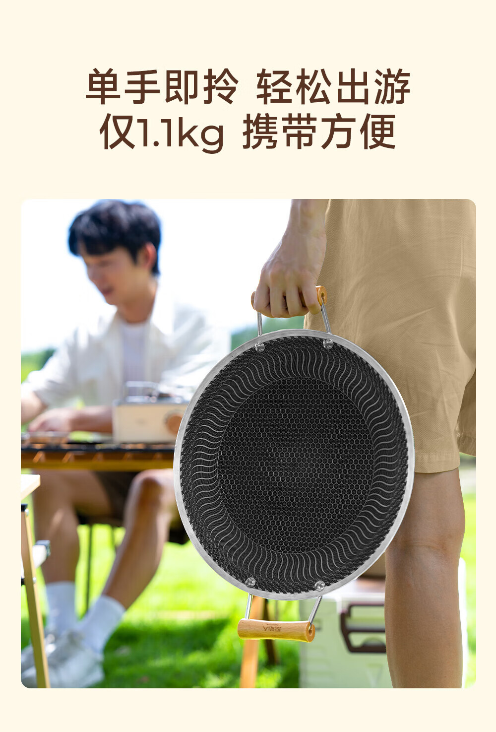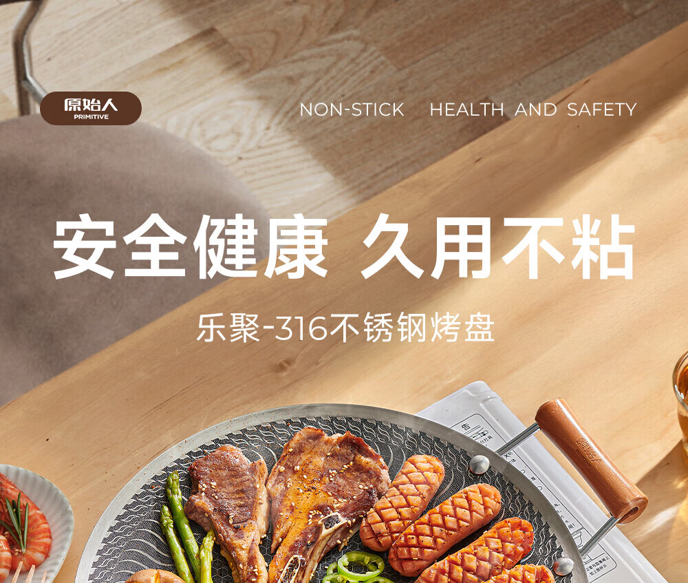原始人户外便携露营烤肉盘家用烤盘卡式炉316不锈钢不粘盘铁板烧电磁炉 【大号】316不锈钢烤盘赠收纳袋