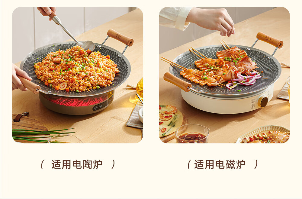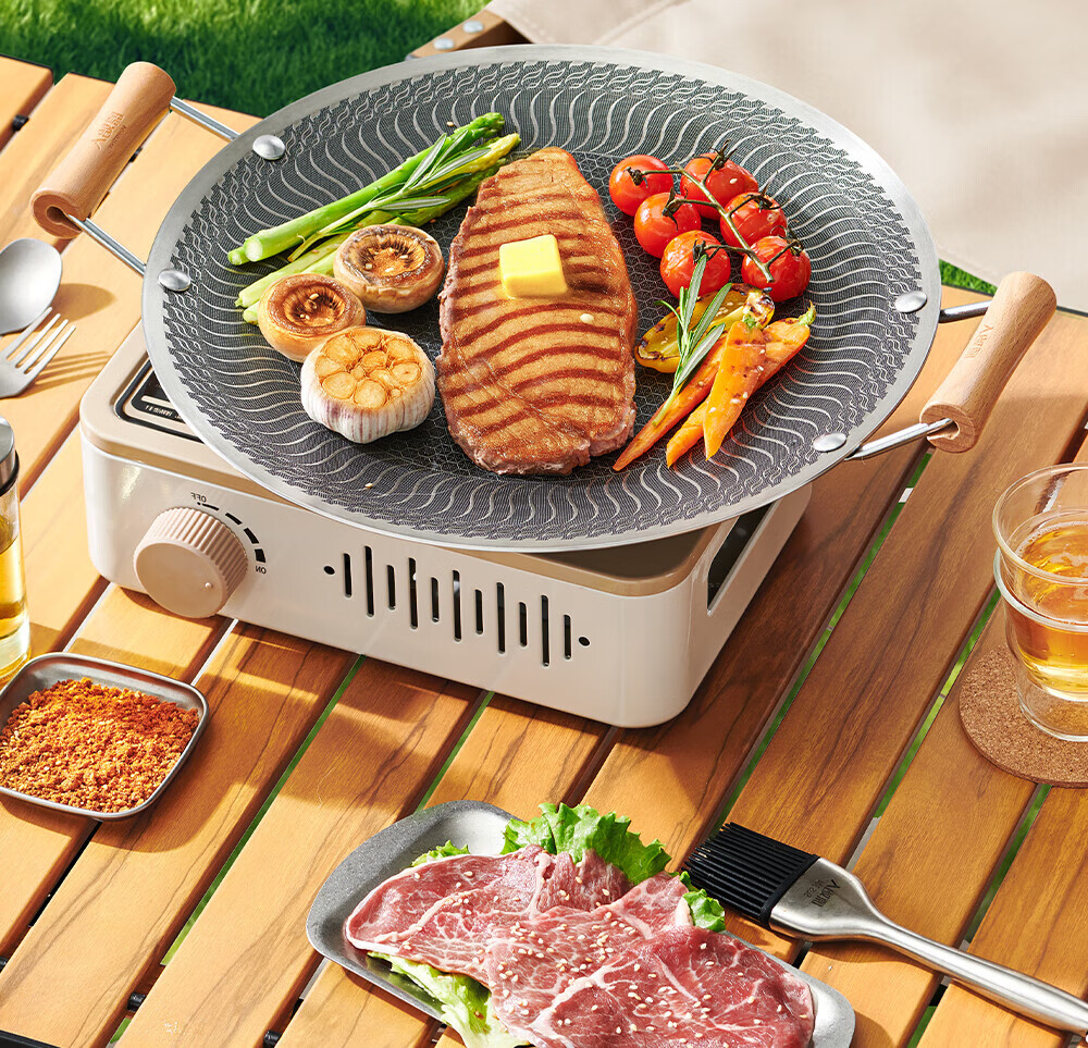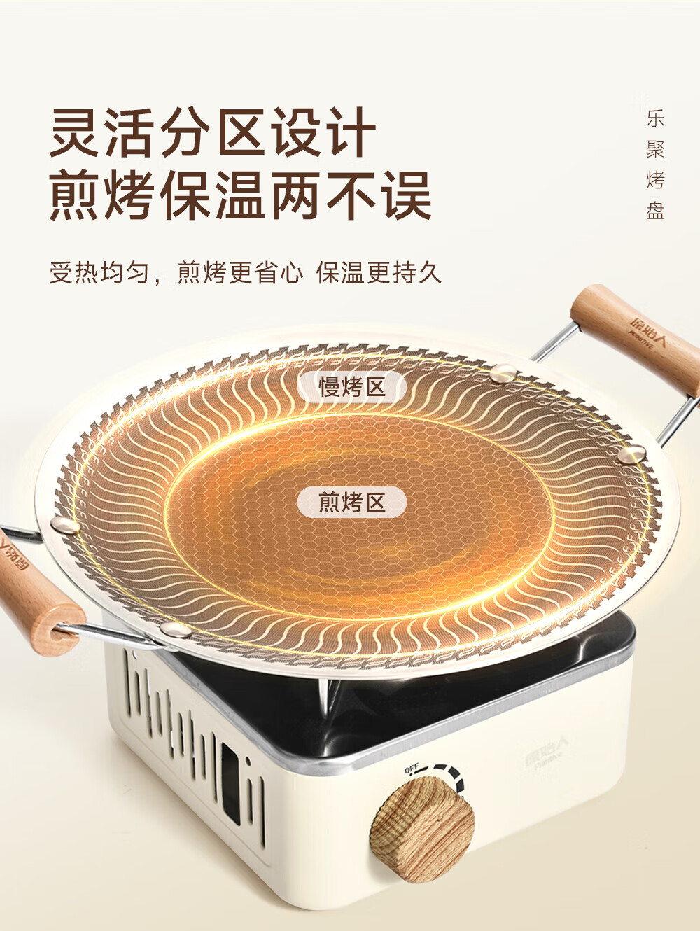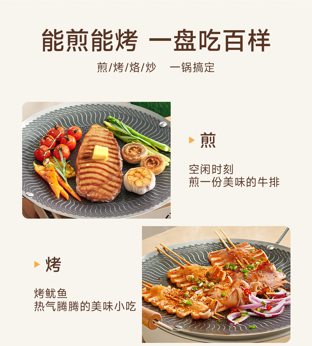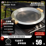 布比克便携卡式炉烤盘户外煎盘304不锈钢家用露营韩式烧烤肉电磁炉双用 【34cm】304不锈钢烤盘