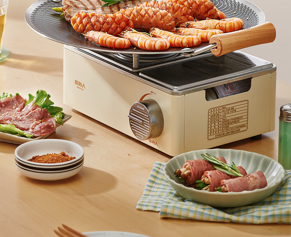 原始人(The Primitive)分体式卡式炉户外炉具便携式新款节能煮茶炉燃气炉灶露营炊具野外 卡其卡式炉+中号铝合金煮锅