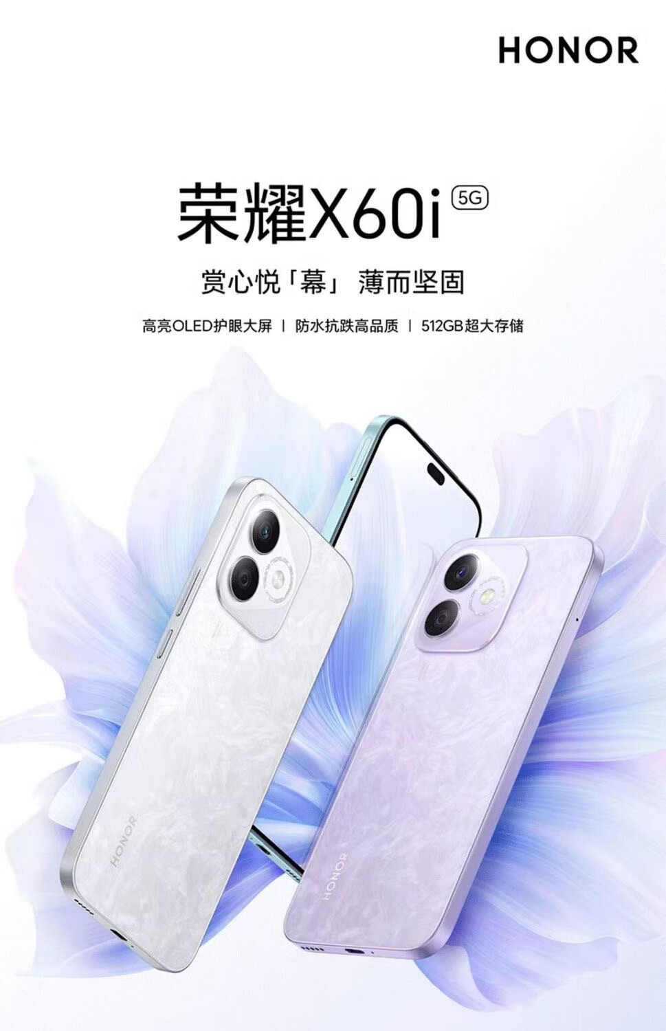 荣耀X60i手机 OLED护眼大屏 IP64防水十面抗摔耐跌老人机学生机备用机 月影白 12GB+256GB 单机+第三方充电器+店保1年
