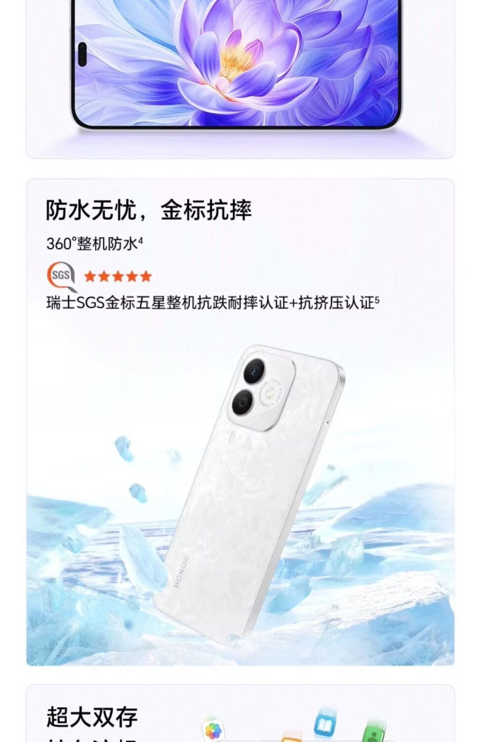 荣耀X60i轻薄大屏十面抗摔整机IP64防水防摔耐磨大电池长续航游戏手机 月影白 12GB+512GB 单机+【原装快充】+店铺质保1年