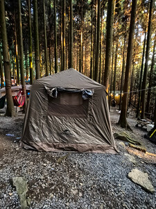 布局合理,三级风下很稳固。搭建挺快,但加上搭外账,钉地钉很费时间。第一次搭建完成花了一个小时,拆帐篷收纳花了一个小时。总体还是很满意的。帐篷内高度不错 可以站直。天幕有些矮。每次收到的快递包装都很破烂,退了一次,第二次发来的快递仍然很破烂。第二次快递到的商品帐篷有很重的腥味,客服说是库房积压捂的。