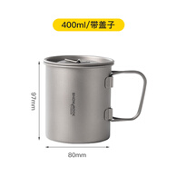 SNOW ROCK【源头厂家直销】英迪户外纯钛水杯家用便携式折叠手柄马克杯餐具 400ml钛杯【带盖】