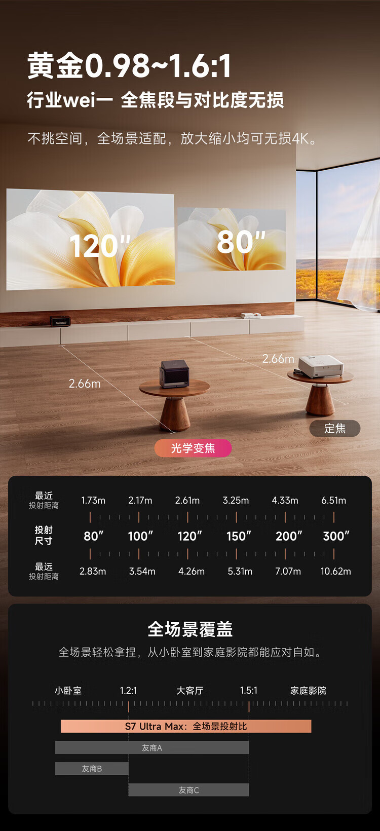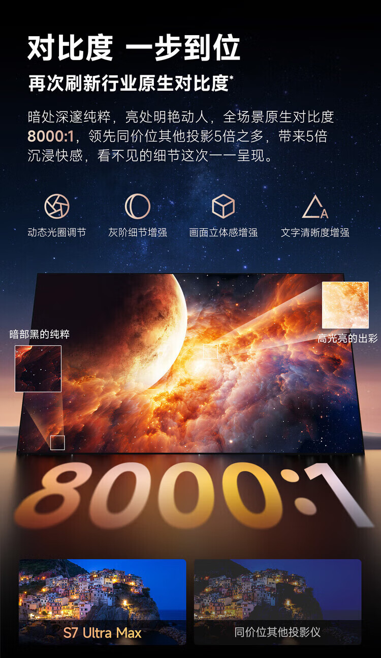 当贝S7 Ultra Max 投影仪家用4K全新三色激光变焦超清家庭影院 X7 Pro【重磅新品 非凡画质】 官方标配