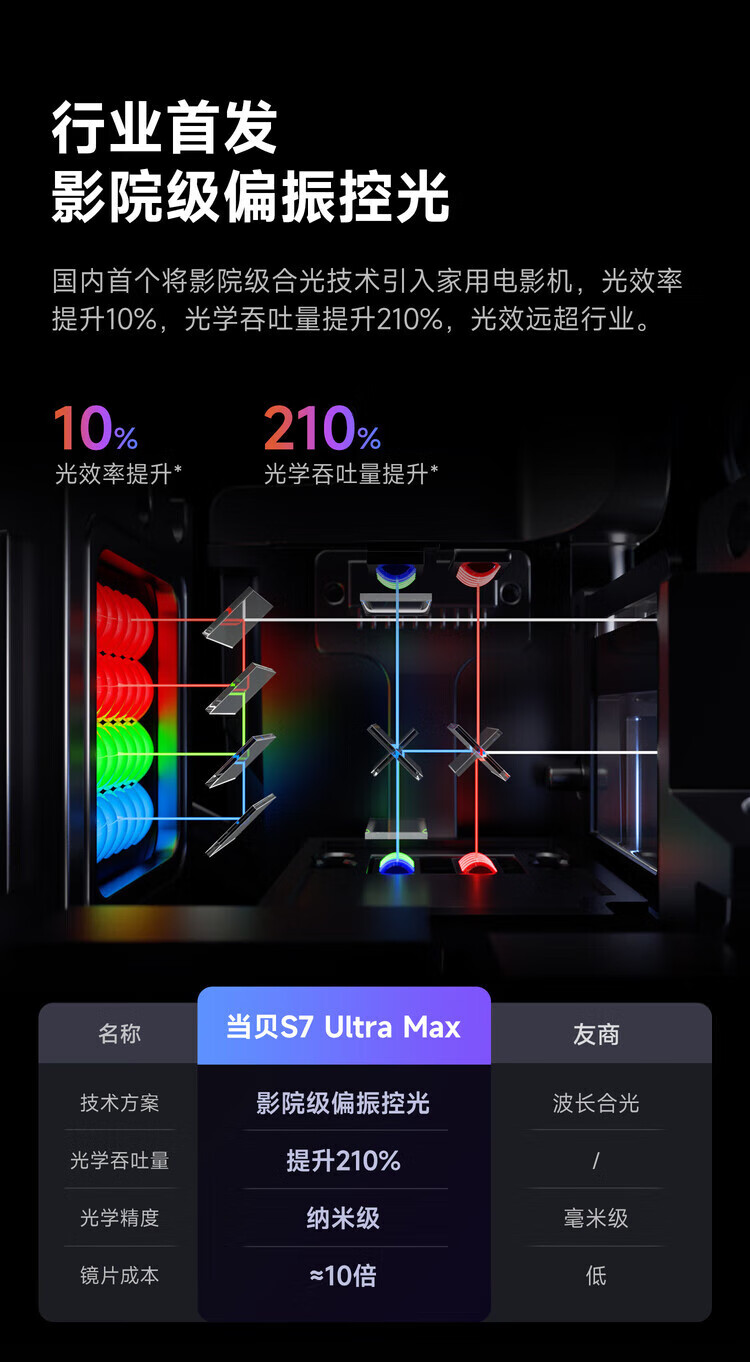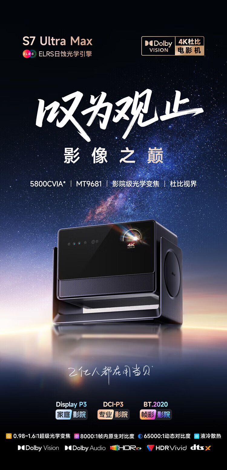 当贝S7 Ultra Pro 投影仪超高清4K全新三色激光家庭影院 家用变焦投影机(5300CVIA 首创液冷散热)