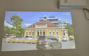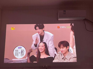 第一张是白天阴天没拉窗帘拍的,后面几张是晚上拉窗帘拍的。直接投的白墙,这个价格我还比较满意,主要是小巧不占位置也方便携带