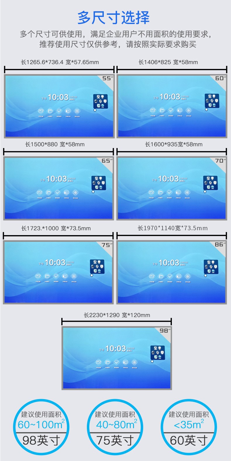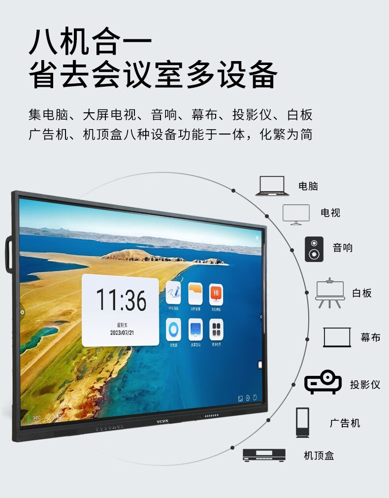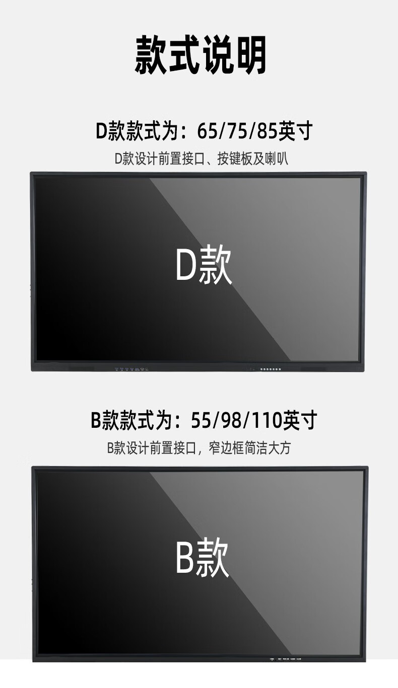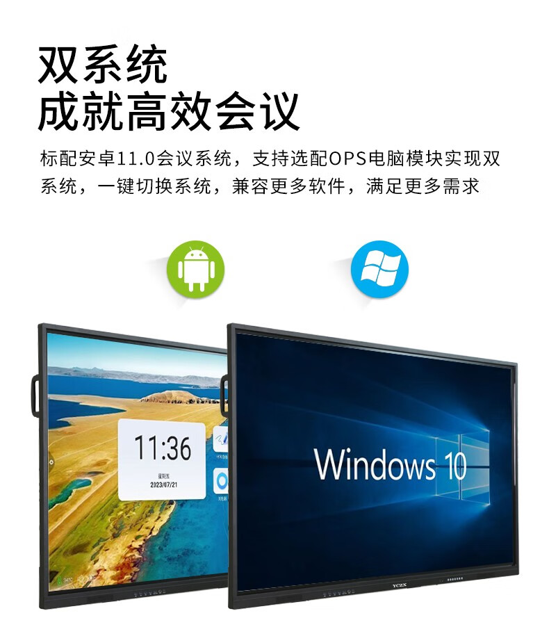智控商显 会议平板一体机电子白板远程投屏智慧黑板智能触摸大屏多媒体教学教育学校培训触控壁挂显示器 85英寸(4K) 教学会议双系统(安卓+I5/4G/128G)