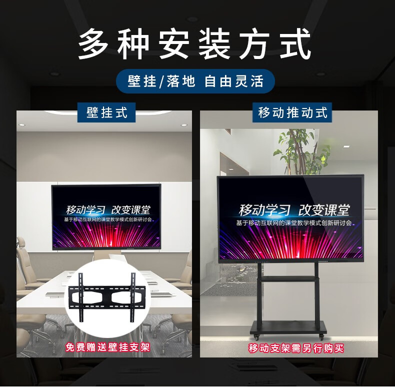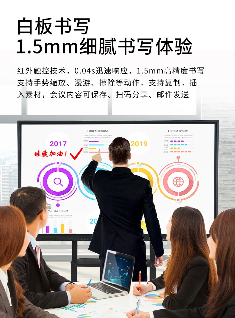 教学一体机触屏会议平板电视多媒体智能电子白板书写学校培训教育幼儿园大屏触摸触控一体机 65寸/适用10-15人/赠送推车 【会议投屏】安卓系统
