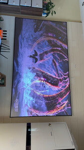 投影配对买了极米得幕布,开机可以自动下拉到预设的位置,十分方便;亮度也是杠杠的,白天和开灯也都不成问题;配对了两个华为音响,兼容性没啥问题.投影自带的音响也非常可以;客厅用落地杆进行侧投,投影自动识别墙面和幕布,不需要复杂的设置,设计人性化
