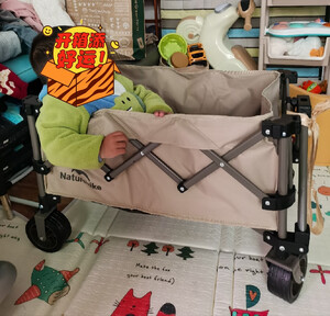 Naturehike挪客轻折全地形聚拢露营车宽轮折叠小推车野外摆摊快递购物手拉车 四人出游套餐/ 340L 有刹车 /卡其色