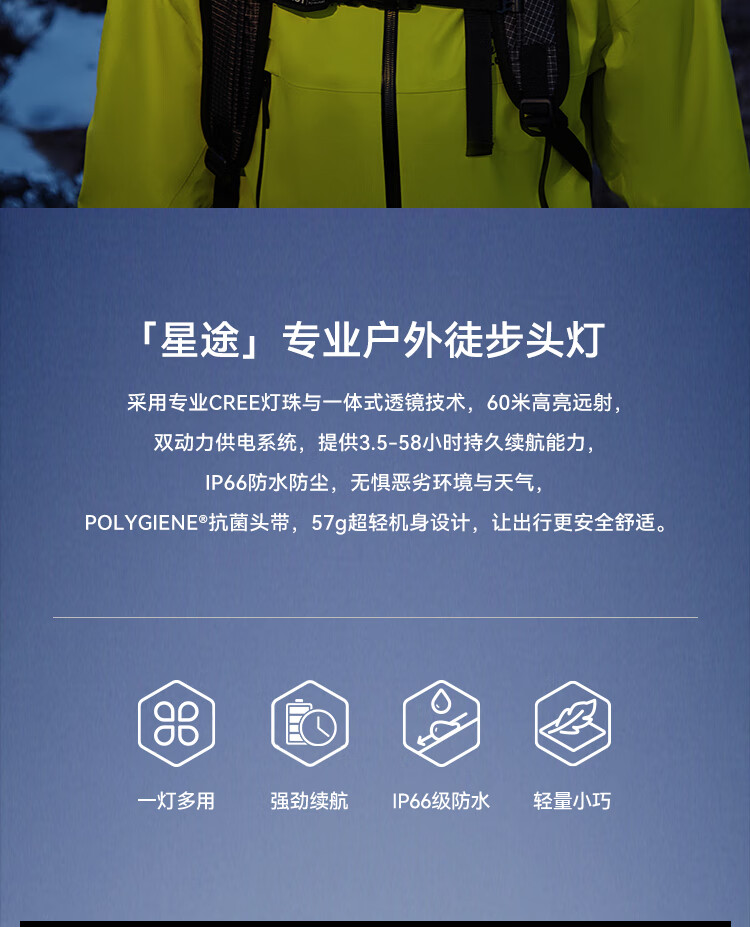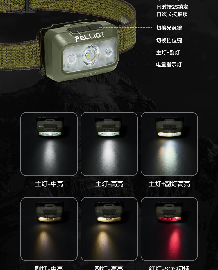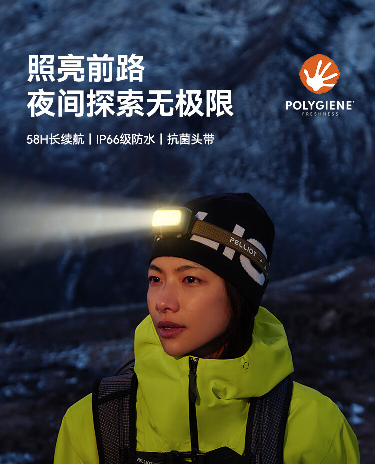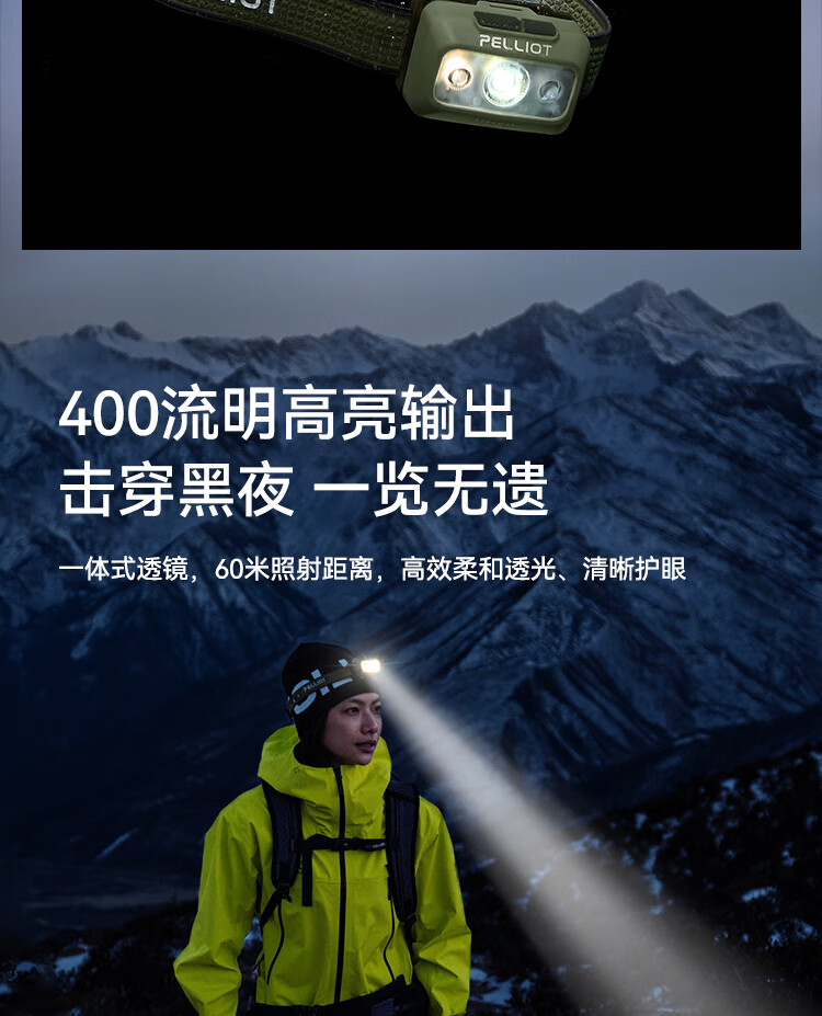 伯希和【星途】户外头灯登山2025新款头戴式强光超长续航钓鱼防水 【曜石黑】IP66级防水超轻强续航