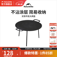 挪客Naturehike平底烤盘不粘烤肉盘户外露营煎烤生铁锅野外便携 圆盘黑色(小号40厘米)