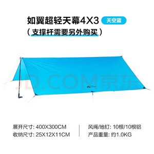 牧高笛(MOBIGARDEN)天幕 户外露营超轻遮阳防雨天幕轻量折叠便携凉亭 天空蓝300*300CM(无支撑杆)